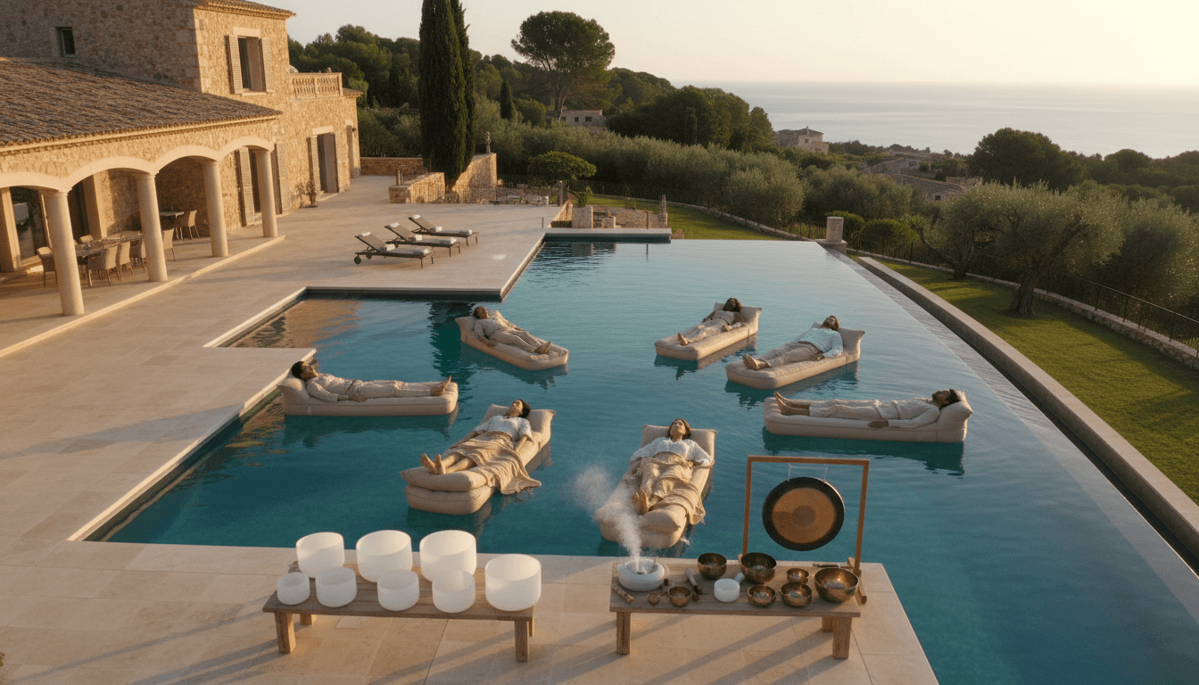 Experience deep relaxation as guests float weightlessly on water while immersed in live healing sound.